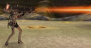 Laser cannons are heavy and slow-firing ranged weapons, usable by Guntechers, Fortegunners, Protransers, and Gunmasters. Their shots can pierce and hit multiple enemies. It is possible to go into first-person shooting mode with this weapon for more accurate shots. It does not hit multiple hitboxes.