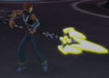 Spears are a two-handed striking weapon. Their three hit combo pierces forwards and can hit two targets. Spears have better Acc. but less Att. than swords. They attack in a cone, similiar to that of a saber, but with longer range. The further away the enemies are, the better the chances to hit two targets that are side by side. This attack radius takes some skill to take advantage of.