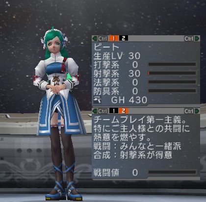 When the production level reaches twenty, fifty or eighty, the PM will evolve into a new form that varies according to the individual synthesis statistics. These distinct PM evolutions will be proficient at certain forms of item synthesis: striking, ranged or TECHNIC weapons, or line shields, and these given specializations will receive an increase in the success rate of that type of synthesis.