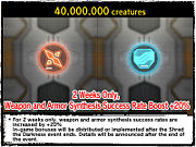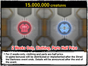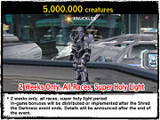 Shred the Darkness was a story-driven event which connected directly with the occurrences of Episode 3 as the story was brought to a close. It ran from April 17 to May 28th, 2009. Outside of informational and exchange missions, three mission types were present in this event: extermination, defense and purification. Furthermore, as with certain previous events, participants earned points which went toward a server-wide total. As predetermined milestones were reached, various prizes were unlocked. Also, in the event missions, enemy EXP payout and item drop rates were increased.