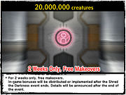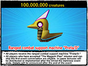 Predetermined milestones were set so that players who reached these marks would receive a special gift. As with the main event rewards, only points accumulated through defeating enemies in the extermination, defense and purification missions were counted. Enemies killed in the side-story mission did not go toward the point total. When a player hit the required mark, they would be notified by an on-screen message, after which the reward mission, Hit the Counter!, would appear at the GUARDIANS HQ mission counter, allowing a player to collect their prize.