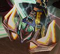 A longbow created from the body of a Zamvapas. Its arrows shock targets with a Stateria's electric aura as they pass through them.