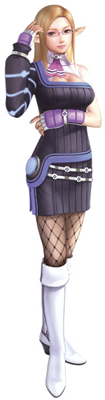 She develops the various pieces of equipment that the Guardians use, as a researcher at the Guardians Equipment Development Division. She is on good terms with Karen, and her mother had adopted Karen, after she was found in the woods. Despite her voluptuous appearance she is not very spontaneous, and sometimes the equipment she offers is defective. She is a fan of Photon-based products, and sees them as being supreme things. She is currently attempting to create a ration that would last over 100 years. All attempts have failed, ending with the ration tasting horribly. She usually uses her charm to get into places you wouldn't normally have access, clinging onto the unsuspecting males arm, and pouring on the compliments. (Wow, that must be some special titanium, made just for you...)