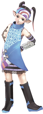 An aide on board the Landeel. Raised in an orphanage, she got lost and couldn't find her destination in an outing, and was then picked up by Tylor while she was wandering around, setting off with him on the Landeel. By nature she is a nice girl, and doesn't like killing. Whilst in the orphanage she was raised with Tonnio, and they were like brother and sister. Now, though, she prefers Tyler's solidarity.