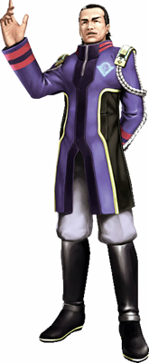 Captain of the Allied Military Forces, or AMF. He is the Platoon Commander of Commando Unit 177, under the direct control of the anti-SEED Directive. He has no experience of the world outside of the military, as he is a career solder who considers the orders of his superior officers and military authorities to be absolute. From the start he has considered races other than the CASTs to be inferior, and is a firm believer in CAST supremacy. He has completely lost the ability to confide in people as a result of undertaking missions to suppress strife everywhere.