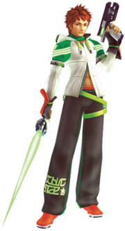 The main character in PSU's Story Mode. A seventeen year old living in the GUARDIANS Colony. His sister, Lumia, was dragged into the SEED invasion as they watched the ceremony of the 100th anniversary of the Alliance between the three planets. This was the first time that the SEED had been active, and eventually he became a cadet at the Guardians, an interplanetary bodyguard organization. He is currently training hard under the supervision of his instructor, Karen Erra.
